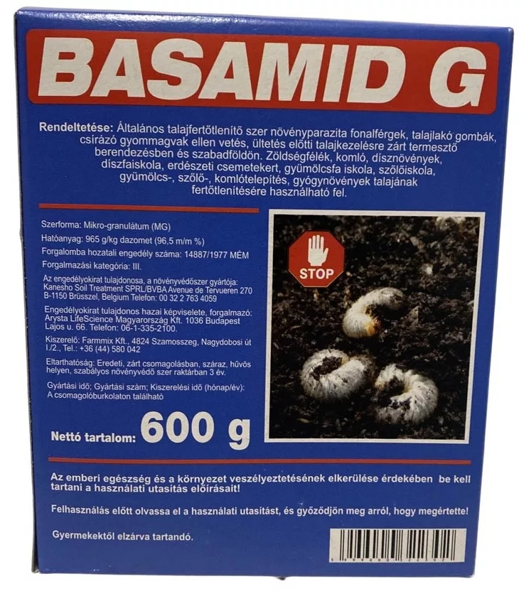 Dísznövények, zöldségfélék, gyümölcsök és gyógynövények talajfertőtlenítő szere.