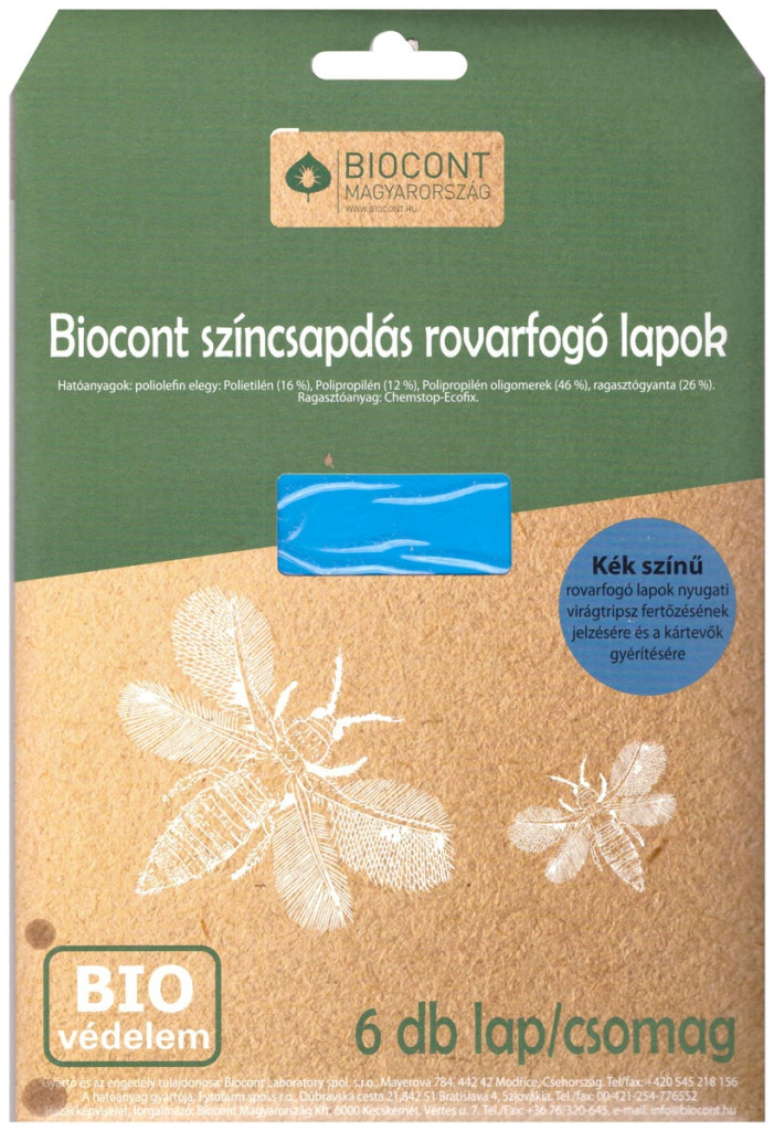 A kék ragadós rovarfogó lapok olyan műanyag lapok, amelyek nem száradó, vízzel nem oldódó ragasztóanyaggal vannak bevonva. Az élénk kék szín vonzza a nyugati virágtripsz szárnyas alakjait. A kártevők rászállnak a kék lapra, beleragadnak a ragasztóba, majd elpusztulnak.