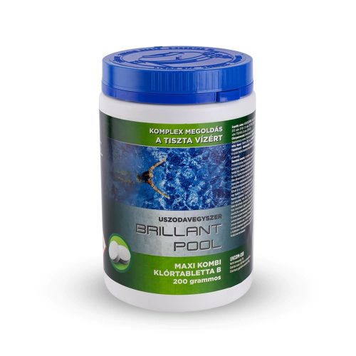 Brillant Pool MAXI KOMBI klór tabletta 200 grammos kivitelben.