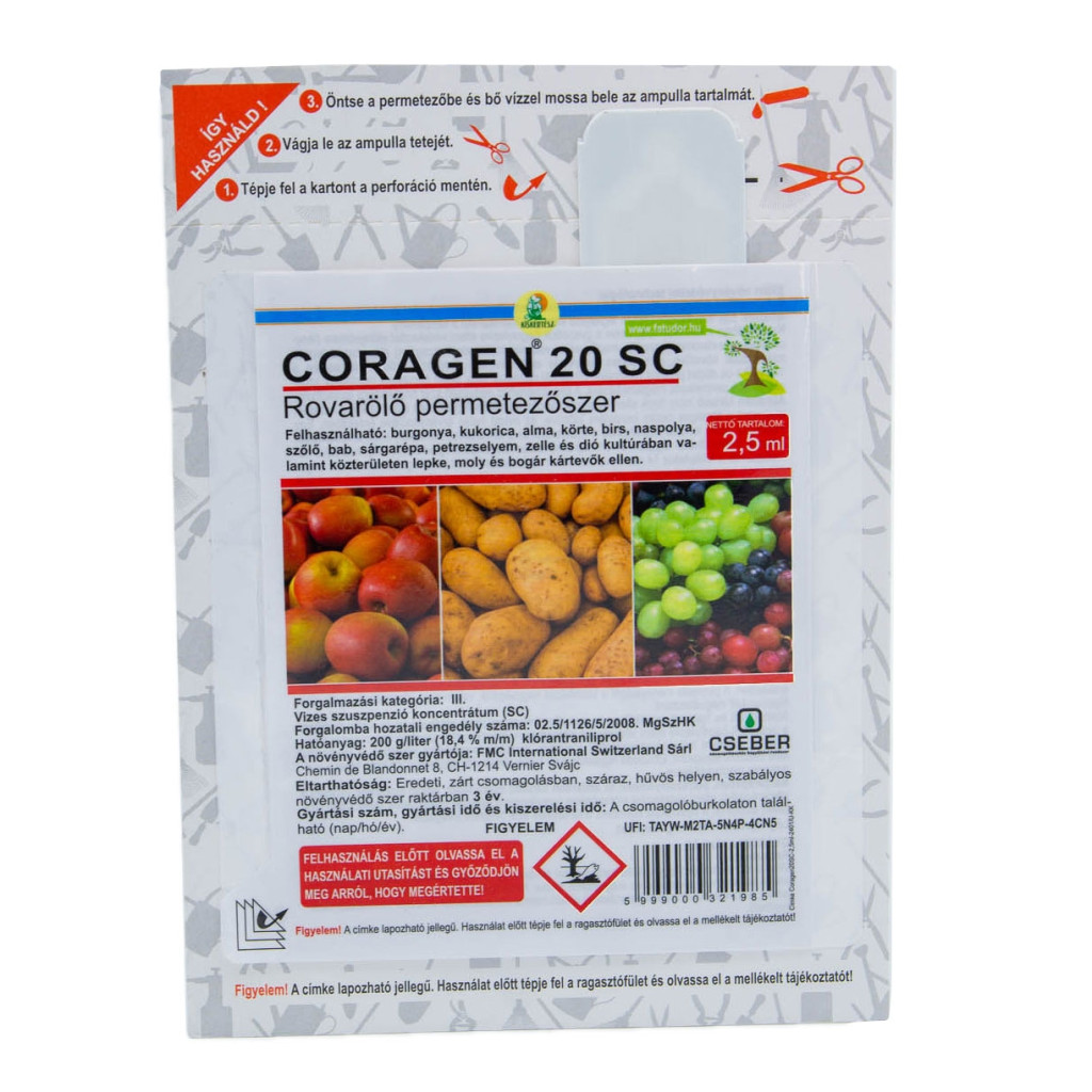 A Coragen® a jelenlegi rovarölő szerekhez képest magasabb biológiai hatékonysággal rendelkezik molykártevők ellen. A Coragen® könnyen kezelhető és jól keverhető más készítményekkel is a jelenleg rendelkezésre álló vizsgálatok eredményei szerint. Kiválóan irtja a célkártevőket, de ugyanakkor minimális hatása van a hasznos rovarokra, ezért megfelelően használva tökéletesen megfelel az úgynevezett IPM technológiákban való alkalmazásnak is. A nagyon alacsony toxicitásnak köszönhetően (emlősök) a permetlé beszáradása után azonnal folytatható a kézi munka az ültetvényekben.