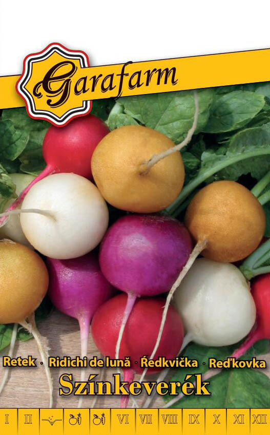 Különböző színű hónapos retekfajták keveréke, lehetőséget ad a hosszabb idejű termés betakarításr...