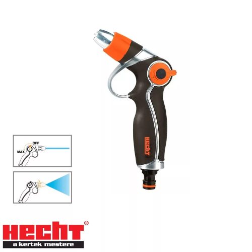 Az univerzális locsolópisztoly 2 fúvókás csatlakozóval van felszerelve, koncentrált sugárral, permetező öntözéshez. Ezek a pisztolyon lévő zárókupak egyszerű elfordításával választhatók ki. A praktikus vezérlésnek köszönhetően a víz könnyen be- és kikapcsolható. A pisztoly ergonomikus fogantyúval van ellátva, könnyen kezelhető vízáramlás-szabályozással. Alkalmas öntözésre vagy kültéri tisztításra.