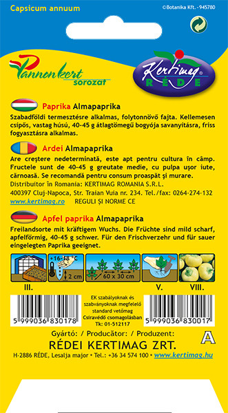 Szabadföldi termesztésre alkalmas, folytonnövő fajta. Kellemesen csípős, vastag húsú, 40-45 g átl...