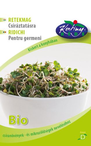 Csíráztatás: Tegyünk 1-2 evőkanál retekmagot egy szűrőbe, jól mossunk meg folyó víz alatt és egyenletesen osszuk el a csíráztató edénybe. Helyezzük 20°C-os világos helységbe, vigyázva arra, hogy ne legyen kitéve direkt napsütésnek. Naponta friss vízzel öblítsük át. A víz soha ne álljon a magokon, mindig csepegtessük le, mivel könnyen berohadhat! 3-5 nap után kész a csíranövény. Hűtőszekrényben 1 hétig tárolható. Felhasználás: A retekcsíra enyhén csípős ízű. Sokféle ételben használható nyersen vagy párolva. Müzliben, joghurtban, túróban és saláta keverékben is kiváló ízű. Tipp: ugyanebből a magból készíthetünk házilag mikrozöldséget is, melyek nagyobbak a csiranövényeknél, már kifejlődött az első igazi levelük.