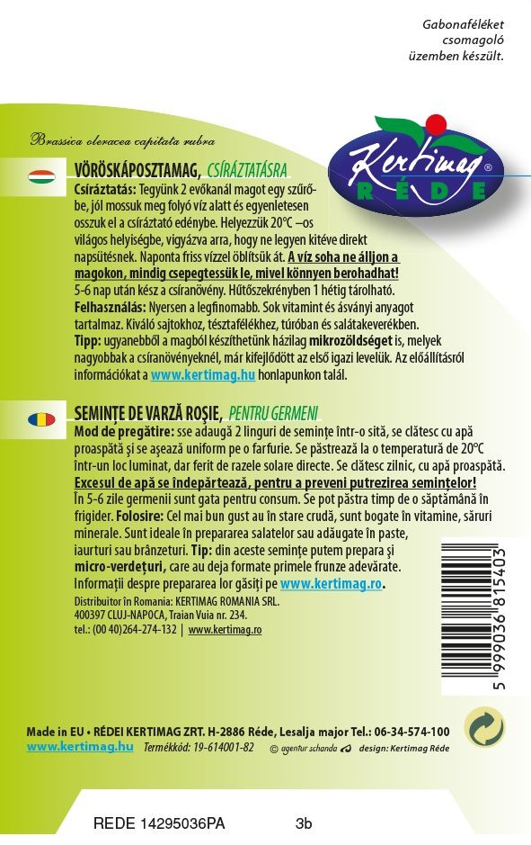 Csíráztatás: Tegyünk 2 evőkanál magot egy szűrő- be, jól mossunk meg folyó víz alatt és egyenletesen osszuk el a csíráztató edénybe. Helyezzük 20°C-os Kertin világos helységbe, vigyázva arra, hogy ne legyen kitéve direkt napsütésnek. Naponta friss vízzel öblítsük át. A víz soha ne álljon a magokon, mindig csepegtessük le, mivel könnyen berohadhat! 5-6 nap után kész a csíranövény. Hűtőszekrényben 1 hétig tárolható. Felhasználás: Nyersen a legfinomabb. Sok vitamint és ásványi anyagot tartalmaz. Kiváló sajtokhoz, tésztafélékhez, túróban és saláta keverékben. Tipp: ugyanebből a magból készíthetünk házilag mikrozöldséget is, melyek nagyobbak a csíranövényeknél, már kifejlődött az első igazi levelük.