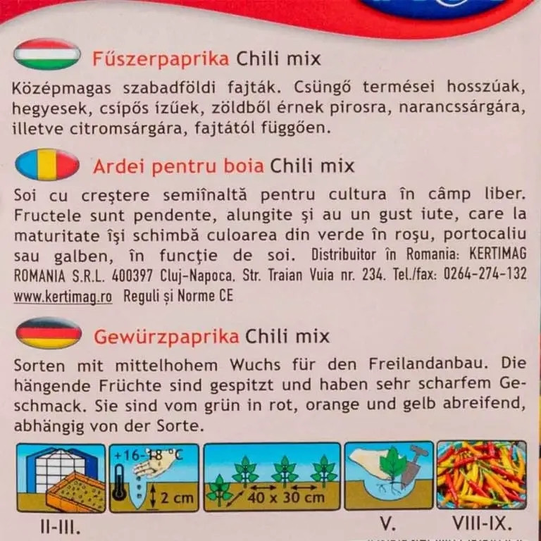 Étkezési fűszerpaprika keverék. Középmagas szabadföldi fajták keveréke. Zöldből érnek pirosra, na...