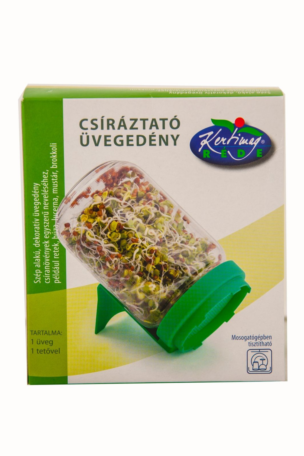 Csíranövények otthoni nevelésére, színesképes kartonban! 13,5 x 10 x 15 cm, 720 ml. Anyaga: PE+üveg. Élelmiszerbarát műanyagból készült!