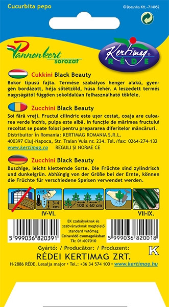 Bokor típusú, szabadföldi termesztésre javasolt, biztonságosan termő, nagy hozamú házikerti cukkini fajta. Termése sötétzöld színű, sokoldalúan felhasználható a leszedett termés méretétől függően.Bokor” típusú, házikerti fajta. Friss fogyasztásra, savanyításra alkalmas.