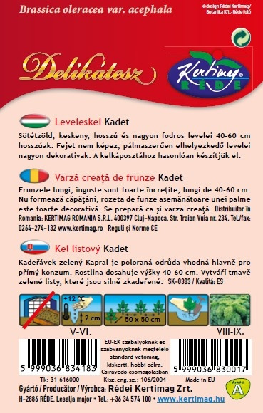 Középkésői leveleskel. Zömök növény, 60-80 cm magas. levele középzöld, erősen fodrozott. Fagytűrő...