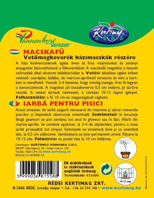 A házikedvencünknek egész éven át friss vitaminokat és ásványi anyagokat biztosíthatunk a fűkeverékkel. A macskafű megelőzi a lenyelt szőrszálak által okozott bélelzáródást is.