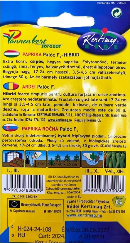 A Palóc F1 egy extra korai, folytonnövő, hegyes, csípős hibrid paprika, amely kiválóan alkalmas h...