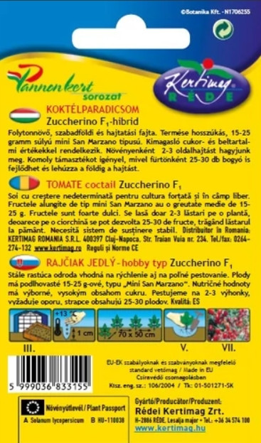 Folytonnövő fajta! Mini San Marzano típusú. Bogyóinak cukortartalma magas (Brix 11). Több száz bogyót fejleszt tövenként.