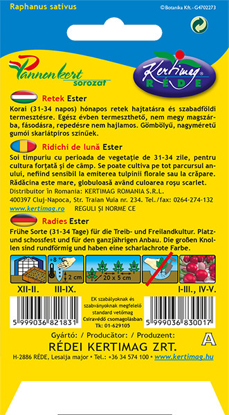 Korai hónapos retek hajtatásra és szabadföldi termesztésre. Egész évben termeszthető, nem megy magszárba. Fásodásra, repedésre nem hajlamos. Nagy, skarlátpiros gumója nem pudvásodik, nem reped ki.