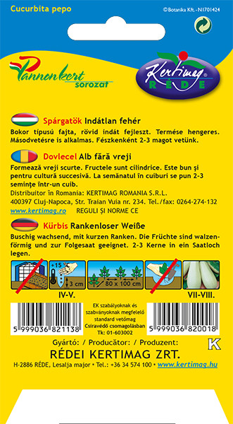 Bokor típusú, rövid indát fejlesztő, bőtermő fajta. Termése hengeres, enyhén bordázott, húsa zöld...