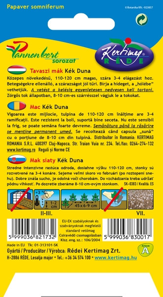 Alacsony morfintartalmú, szép sötétkék magszínű fajta. Korán virágzik. Megdőlésre nem hajlamos. K...