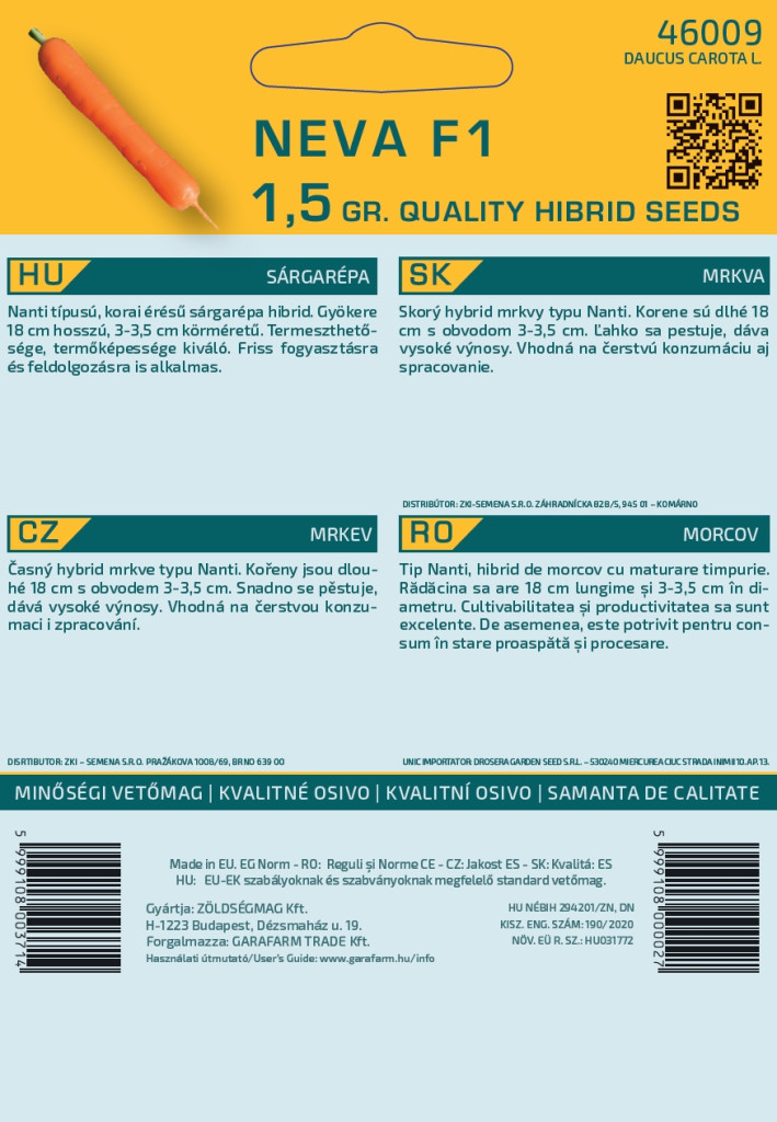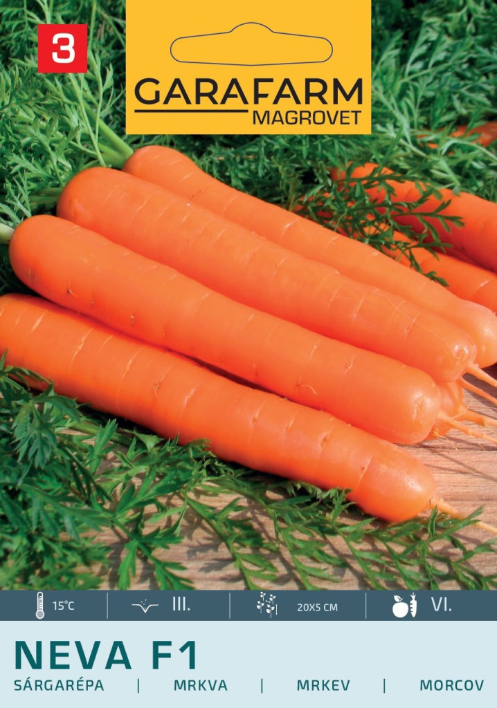 Nanti típusú, korai érésű sárgarépa hibrid. Gyökere 18 cm hosszú, 3-3,5 cm körméretű. Termeszthet...
