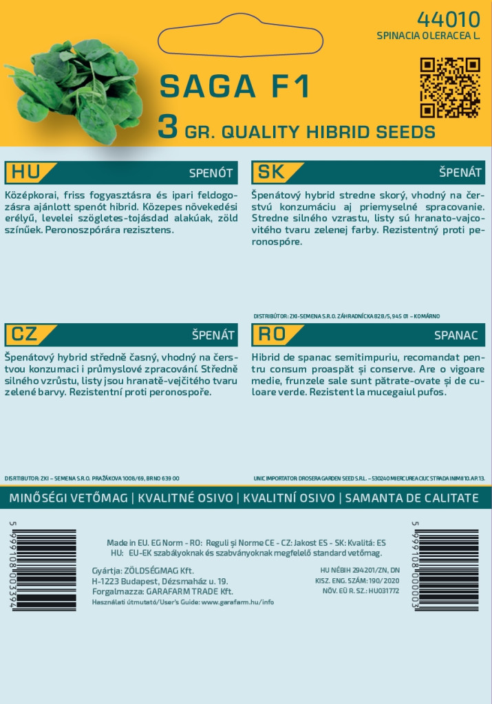 Középkorai, friss fogyasztásra és ipari feldogozásra ajánlott spenót hibrid. Közepes növekedési e...