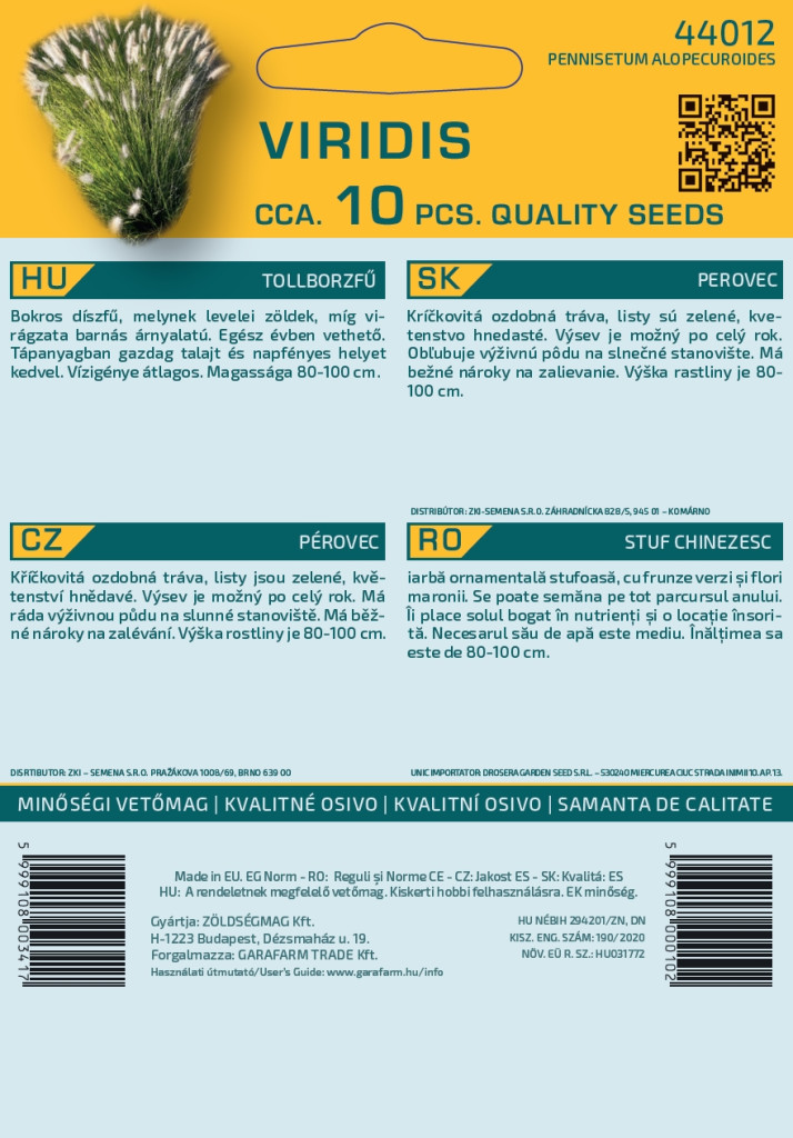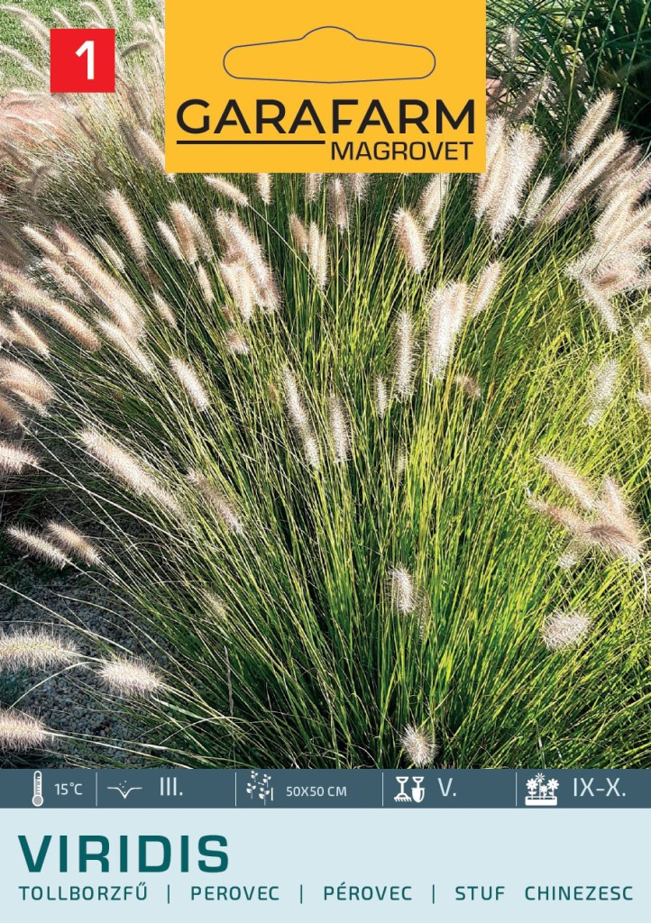 Bokros díszfű, melynek levelei zöldek, míg virágzata barnás árnyalatú. Egész évben vethető. Tápan...