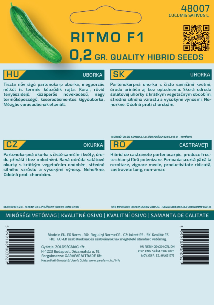 Tiszta nővirágú partenokarp uborka, megporzás nélkül is termés képződik rajta. Korai, rövid tenyészidejű, középerős növekedésű, nagy termőképességű, keseredésmentes kígyóuborka. Mézgás varasodásnak ellenáll.