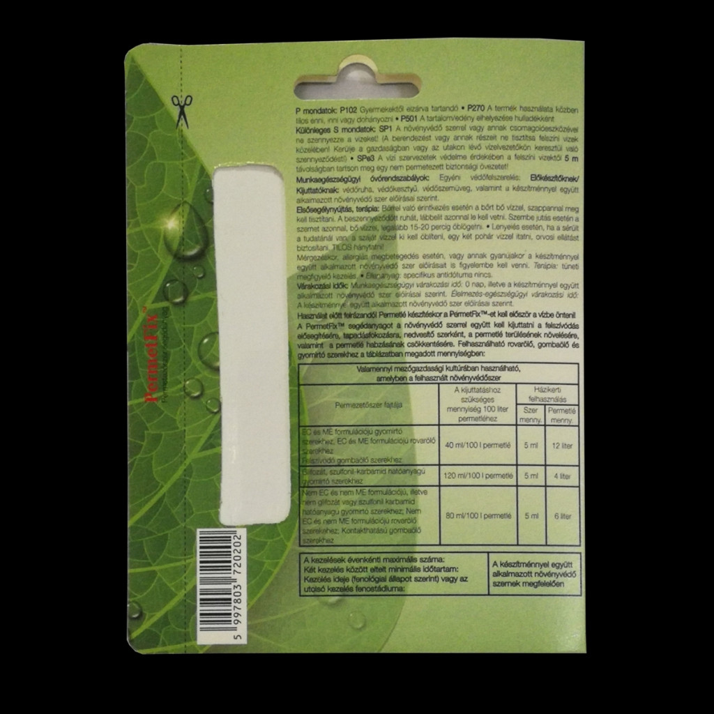 A növényvédő szerek felszívódását, tapadását (esőállóságát), a permetlé terülését és az egyenletes oldat (permetlé) készítését elősegítő adalék anyag. Egy ampulla 10 liter permetlé készítéséhez elegendő. Használata mindenfajta permetezéshez javasolt. Az életképek tájékoztató jellegűek!