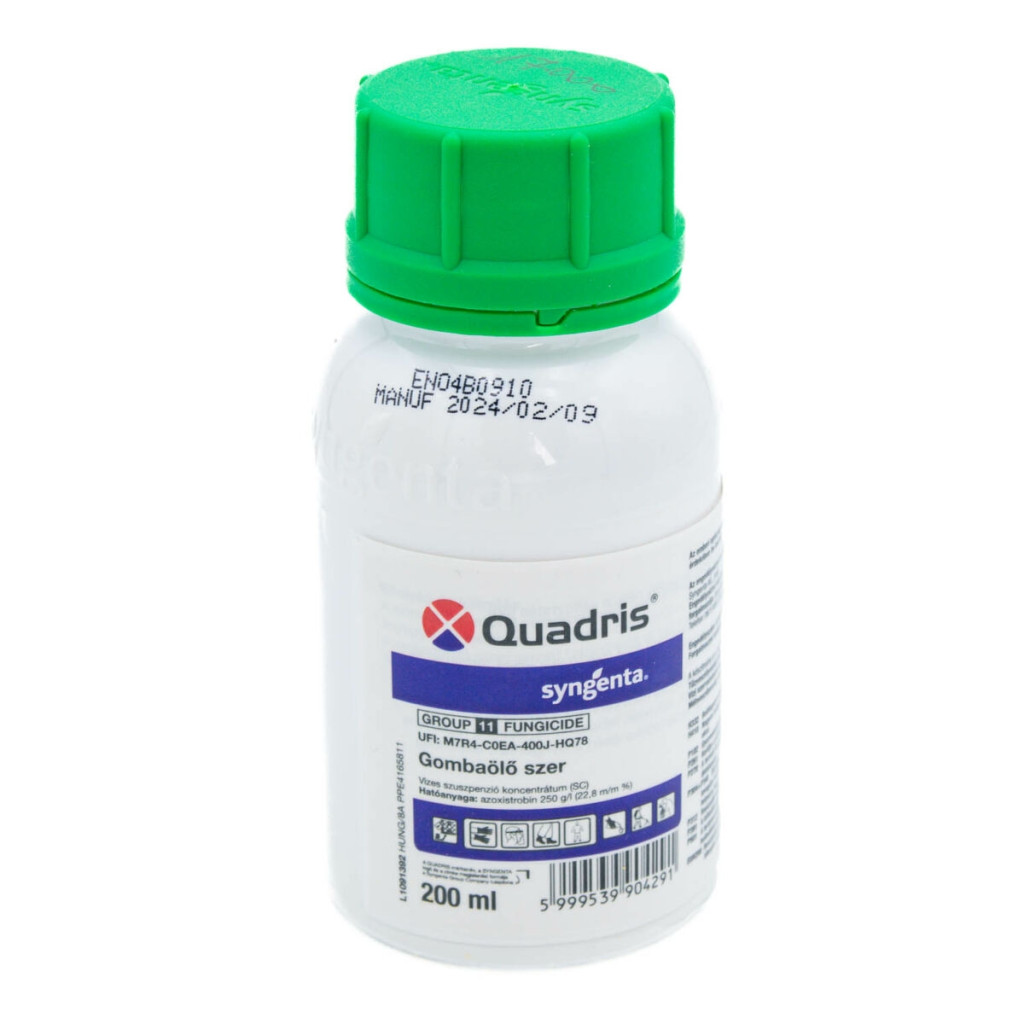 A gombasejten belül a gomba létfontosságú szervében, a mitokondriumban fejti ki hatását. A mitokondriumon belüli két koenzim, a citokróm B és C1 között lévő elektronszállító rendszer működését gátolja. Ezzel megakadályozza a gomba szempontjából létfontosságú energiaképzést, valamint ezzel együtt a gomba légzését is. A gombaölő szerek között – új hatásmódjának köszönhetően – olyan kórokozók ellen is jó hatékonyságot mutat, amelyek egyéb gombaölő szerekkel szemben már toleránsak. Az Quadris egyedi tulajdonsága, hogy a szénhidrátok beépülését segíti, ezáltal a termésbiztonságot és termésmennyiségét növeli.