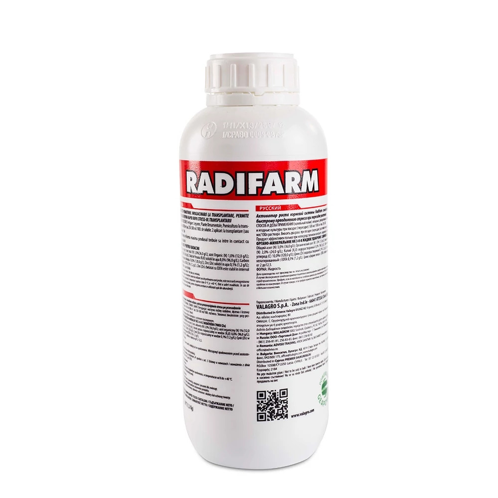 Egy olyan biostimulátor, melynek használata elsősorban az átültetési időszakban és/vagy a növények korai fejlődési szakaszában ajánlott. A készítmény nemcsak tápanyagokkal látja el a növényt, hanem azáltal, hogy fokozza az oldalgyökerek hosszát és a járulékos gyökerek számát, egy sűrű és fejlett gyökérrendszer létrejöttét is elősegíti. A Radifarm gondoskodik a palánták megfelelő gyökérzetéről, valamint gyors felépülést biztosít a kiültetési stressz hatása alól, még kedvezőtlen hőmérsékleti és páratartalmi viszonyok között is.