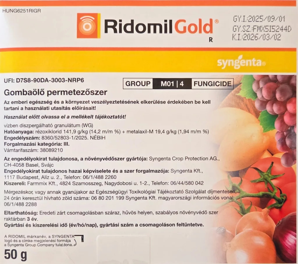 Egyedi réz tartalmú gombaölő szer peronoszpóra és a fioftórás betegségek ellen. A Ridomil Gold R legfőbb tulajdonságai: Az egyedülálló rézformula tökéletes fedést biztosít,