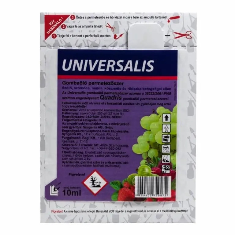 A Universalis gombaölő permetezőszer azonos a 36222/2001.FVM számon engedélyezett Quadris gombaöl...