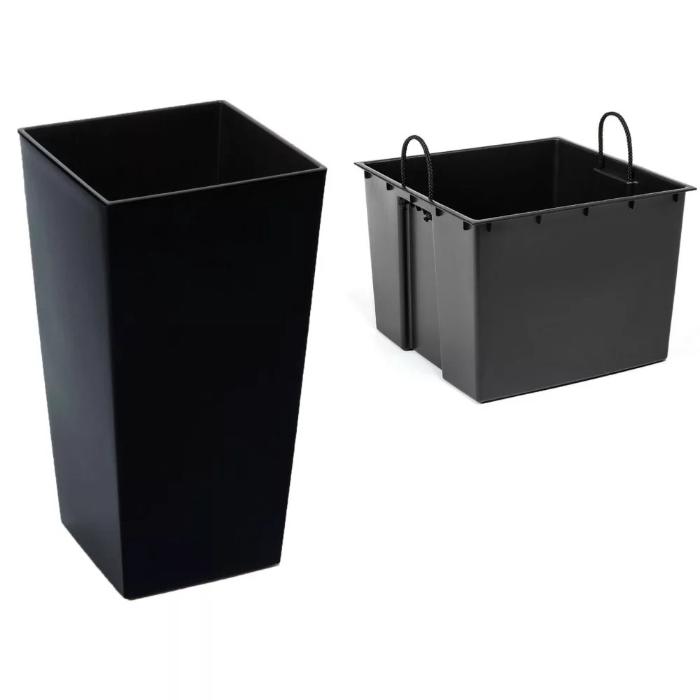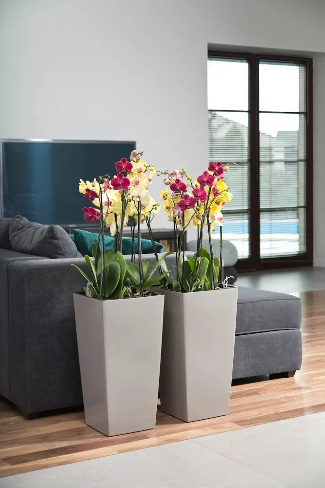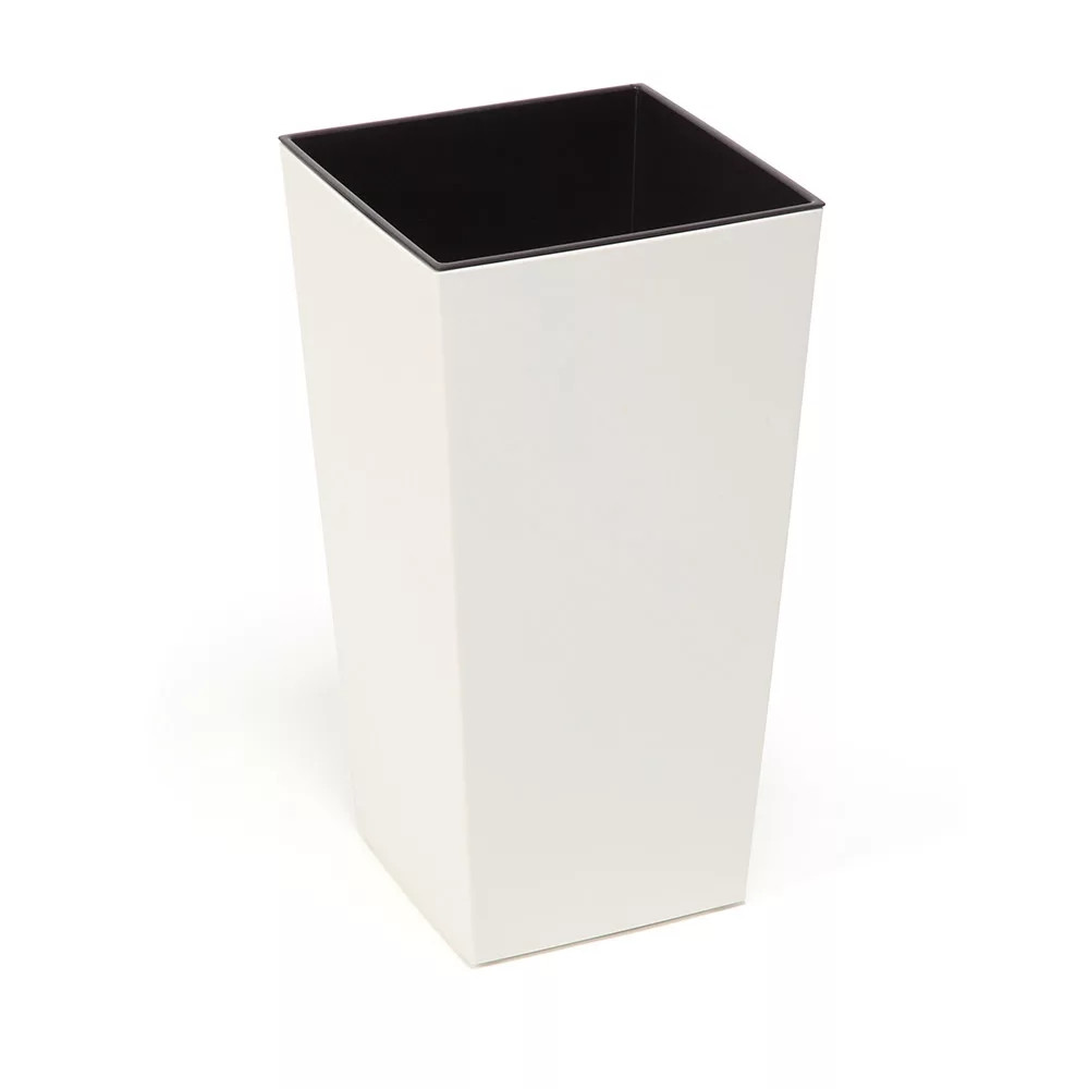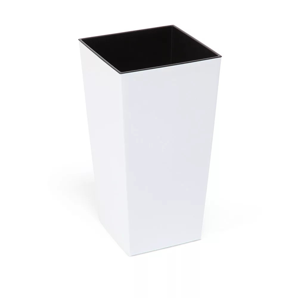 Elegáns, szögletes formájú műanyag LAMELA Finezja virág kaspó, belehelyezendő betéttel, amelybe közvetlenül ültethető a virág és egyéb növény.