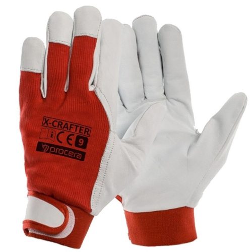 X-CRAFTER kesztyű kecskebőr markolatrésszel. Felső része elasztikus piros pamutszövet. A tépőzáras rögzítés húzózsinórral kombinálva tökéletes illeszkedést biztosít. Tökéletes minden gépészeti és háztartási munkához. Nagyon jó kézügyességet és fogást biztosít