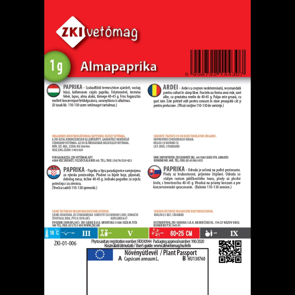 Szabadföldi termesztésre ajánlott, vastag húsú, kellemesen csípős paprika. Folytonnövő, termése fehér, lapos, alma alakú, tömege 40-45 g. Friss fogyasztás mellett konzervipari feldolgozásra, savanyításra is alkalmas.
