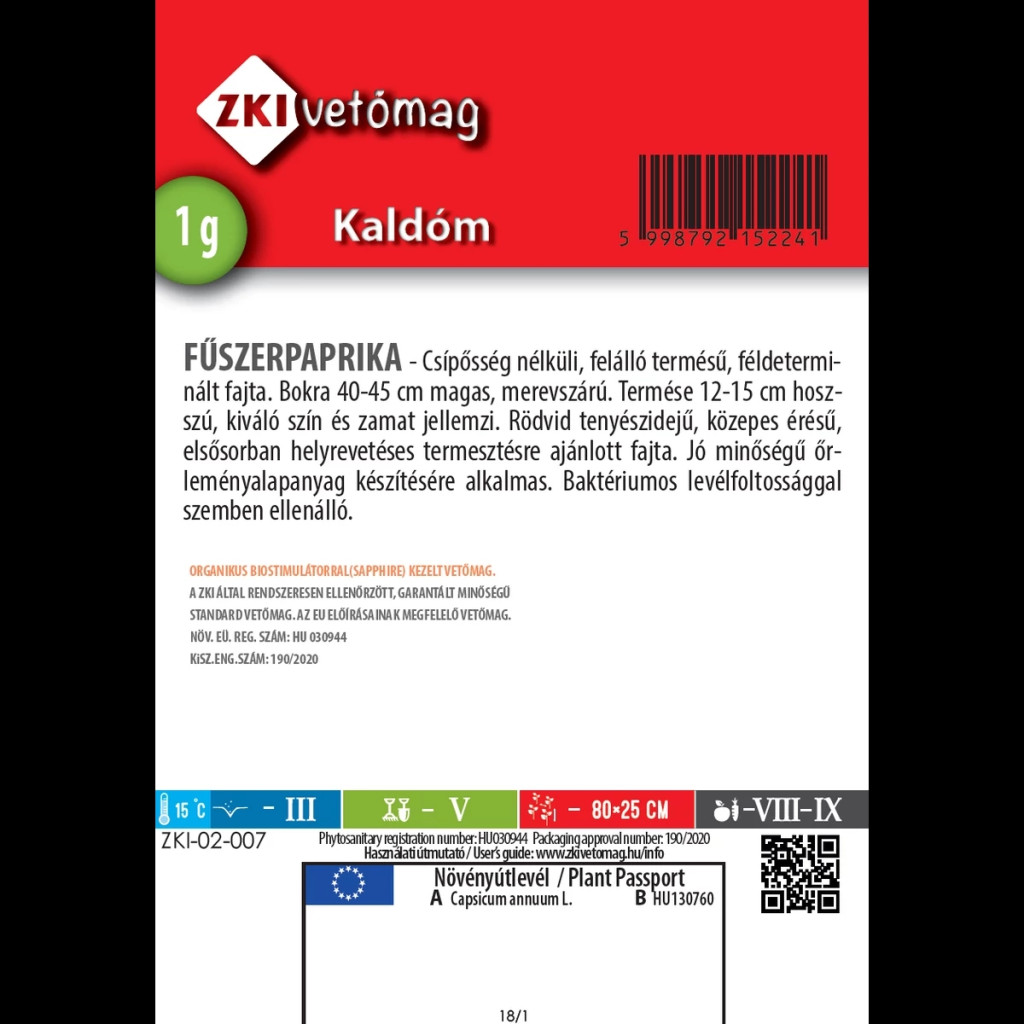 Csípősség nélküli, felálló termésű, féldeterminált fajta. Bokra 40-45 cm magas, merevszárú. Termése 12-15 cm hosszú, kiváló szín és zamat jellemzi. Rövid tenyészidejű, közepes érésű, elsősorban helyrevetéses termesztésre ajánlott fajta. Jó minőségű őrleményalapanyag készítésére alkalmas. Baktériumos levélfoltossággal szemben ellenálló.